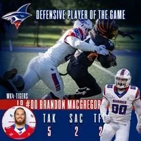 Defensive Player of the Game Awarded to LB #00/59 Brandon MacGregor